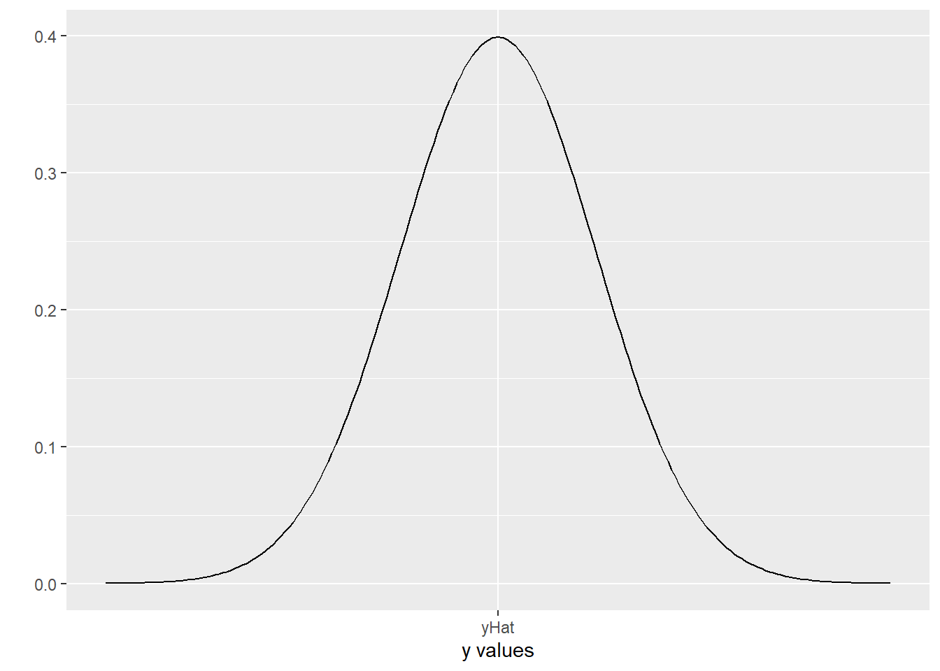 The actual \(y\) values have a Normal distribution, centered at yHat. This is our assumption of Normal errors!