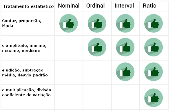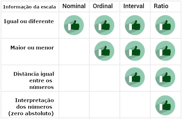 Tirando essas particularidades, é fundamental entender que os números atribuídos à essa escala são arbitrários e apenas identificam objetos ou eventos.