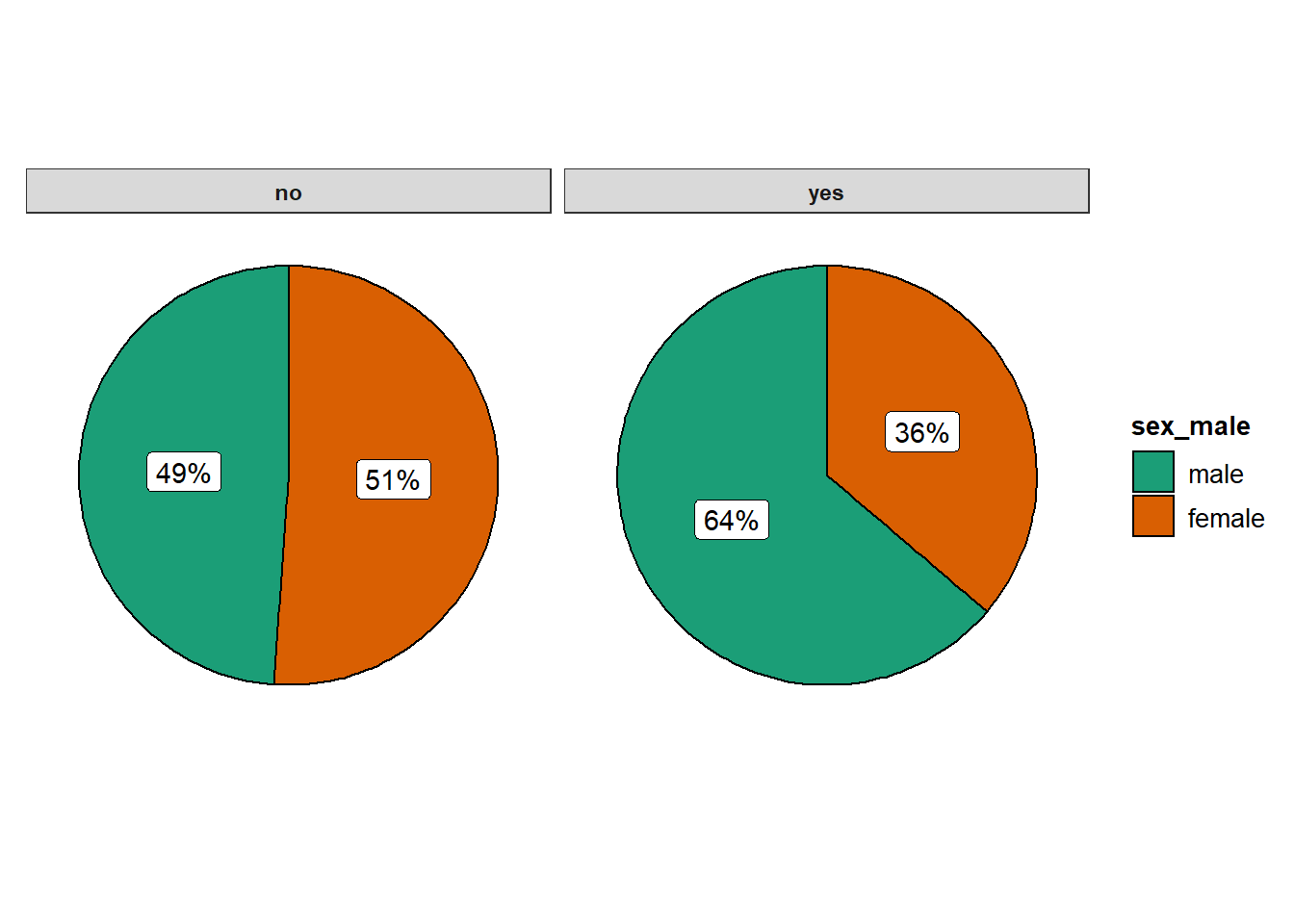 Apesar da tabela já ser bastante informativa, o gráfico de setor otimiza a visualização dos resultados e, por isso, sua realização é recomendada. O pacote ggstatsplot é uma excelente opção para construir este gráfico.