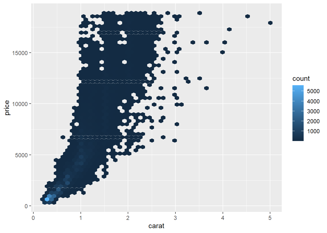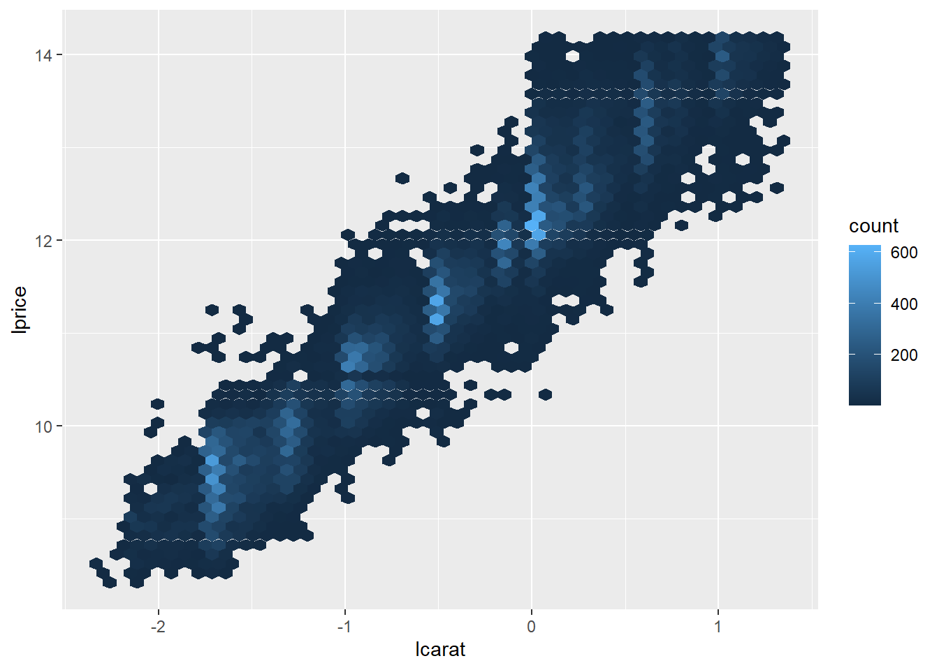 mutate(lprice = log2(price), lcarat = log2(carat))这样处理后,更容易发现其他变量对价格的影响。