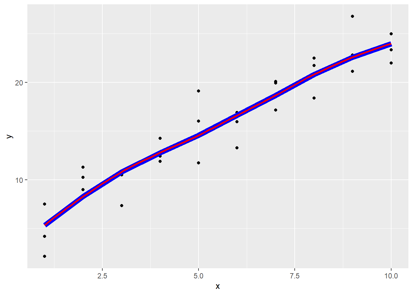 geom_smooth(formula = y ~ x, col = "red", se = F, alpha = 0.2)## `geom_smooth()` using method = 'loess'