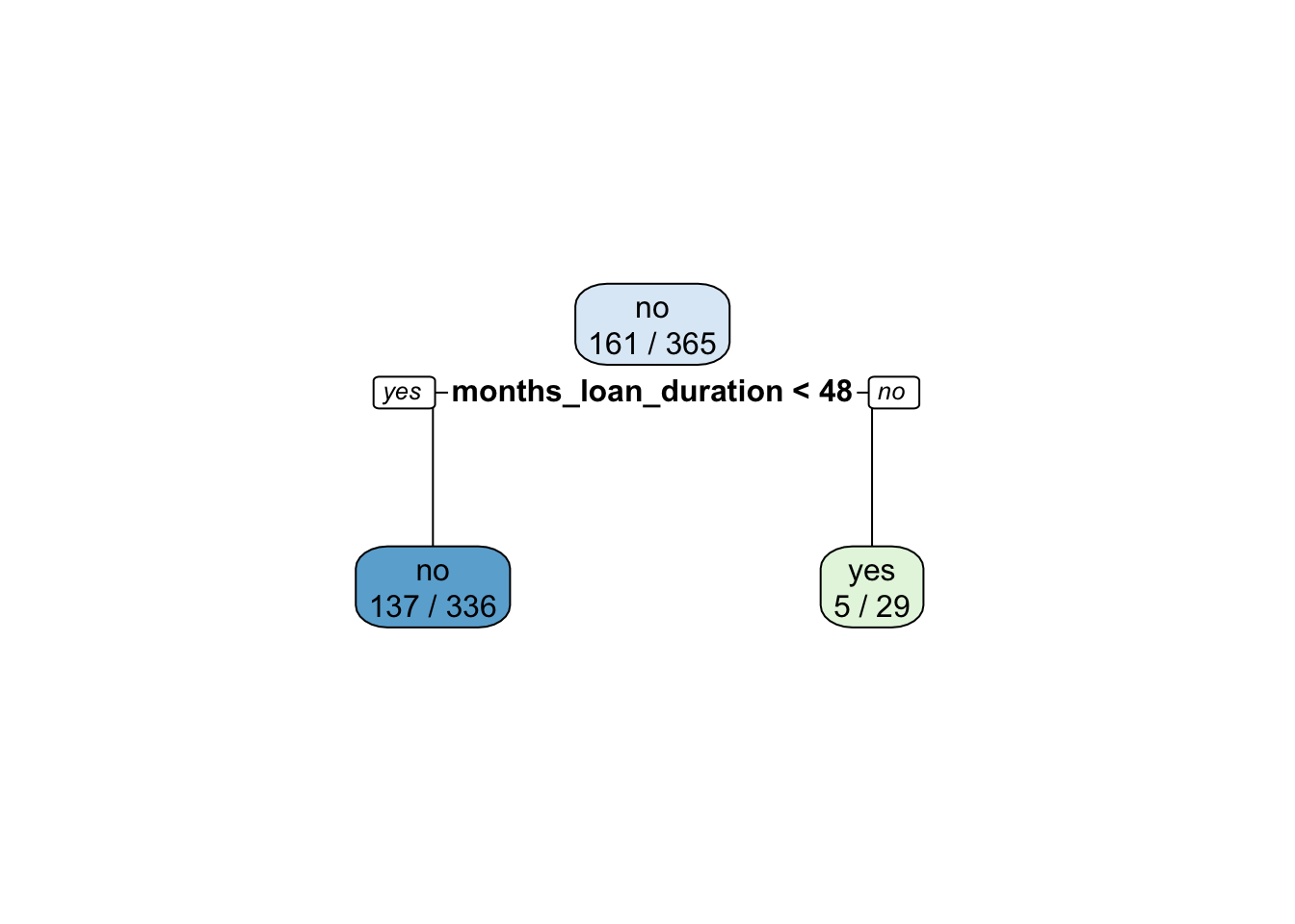 ## 2) months_loan_duration< 47.5 336 137 no (0.5922619 0.4077381)