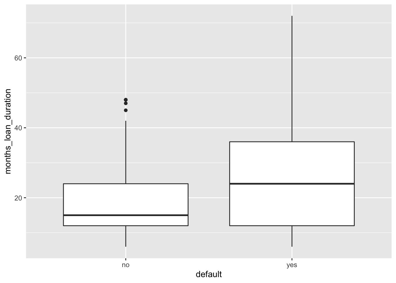 geom_boxplot(aes(x=default, y=months_loan_duration))