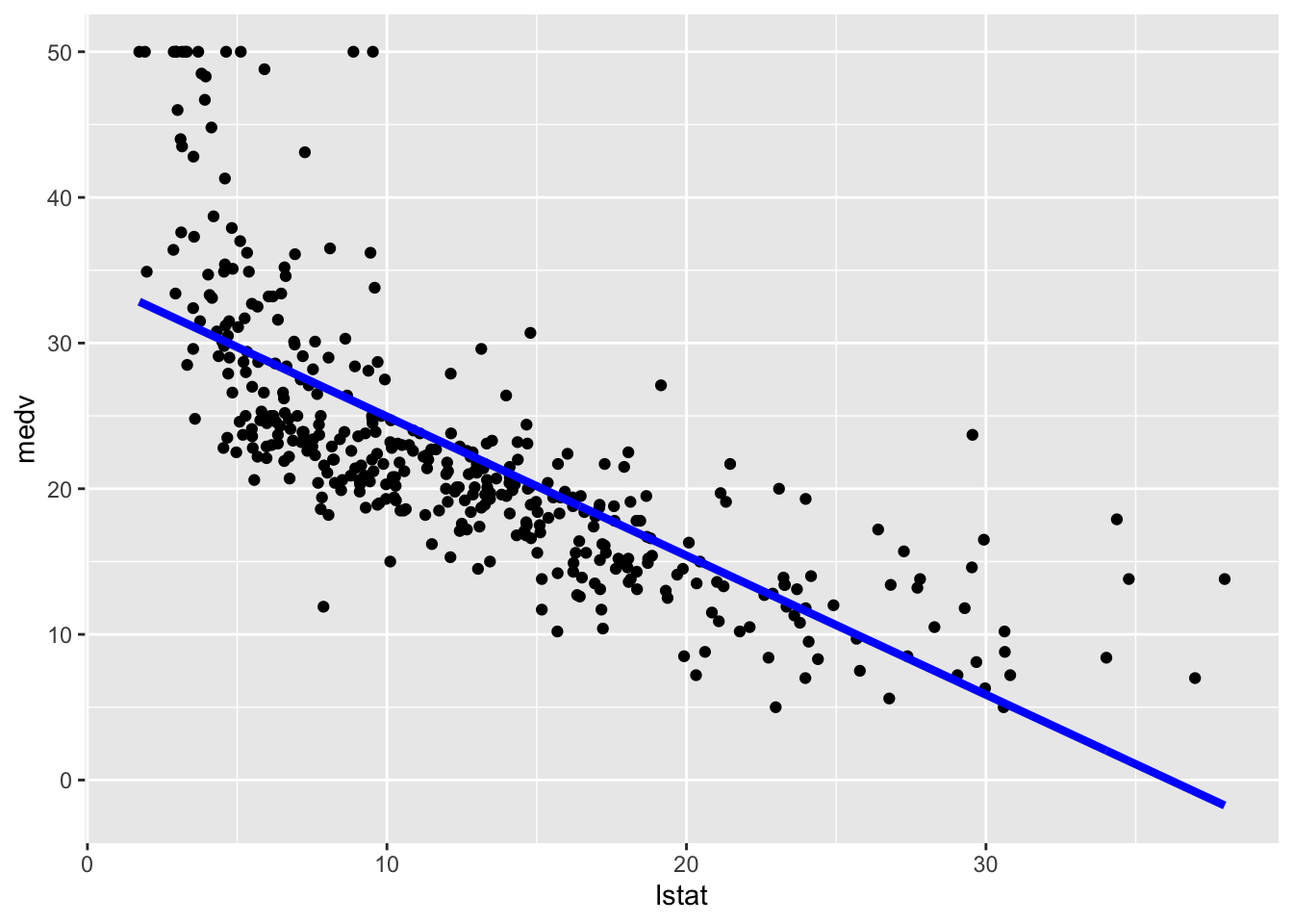 mod_lm = lm(medv ~ lstat, data = train.data)