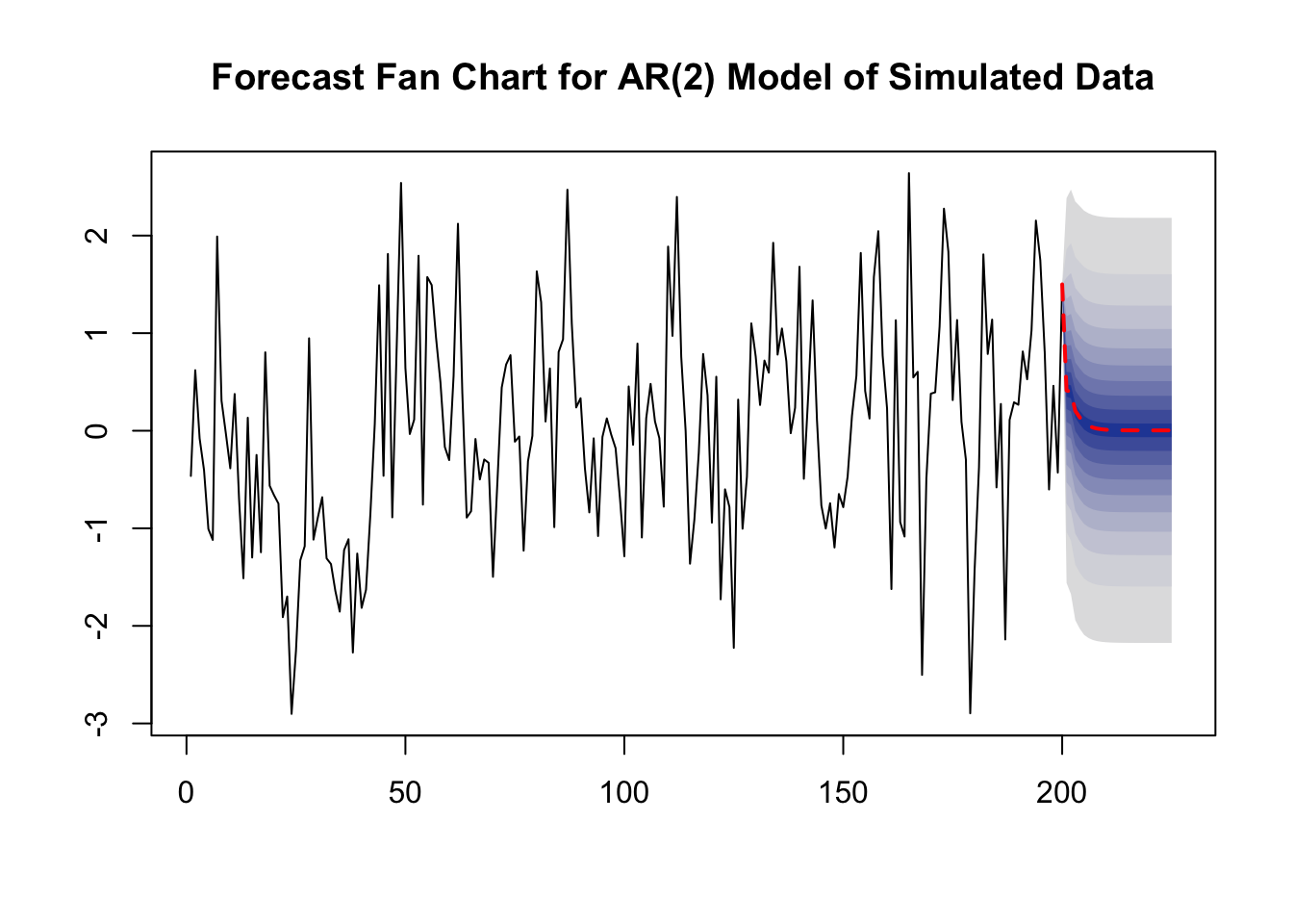 main = "Forecast Fan Chart for AR(2) Model of Simulated Data",