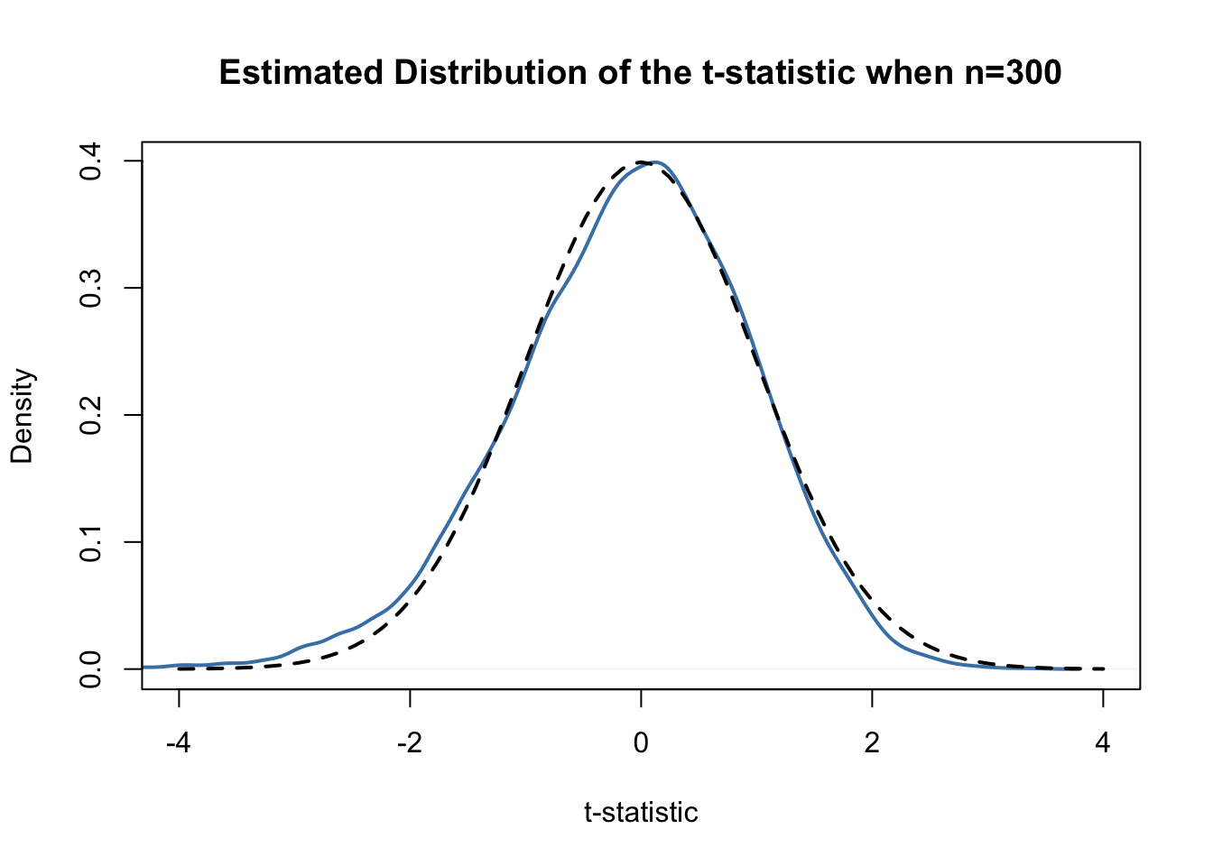 main = 'Estimated Distribution of the t-statistic when n=300',