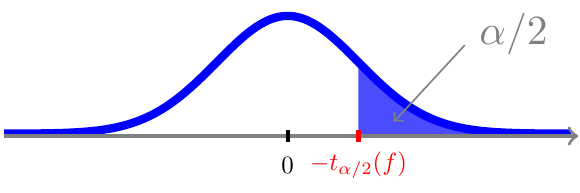 og dermed ligger der \(1-\alpha\) sandsynlighed i intervallet \([t_{\alpha/2}(f);\;-t_{\alpha/2}(f)]\)
