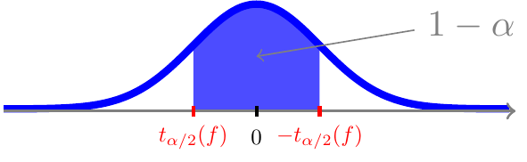 og dermed ligger der \(1-\alpha\) sandsynlighed i intervallet \([t_{\alpha/2}(f);\;-t_{\alpha/2}(f)]\)