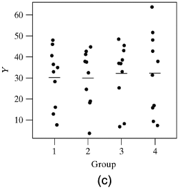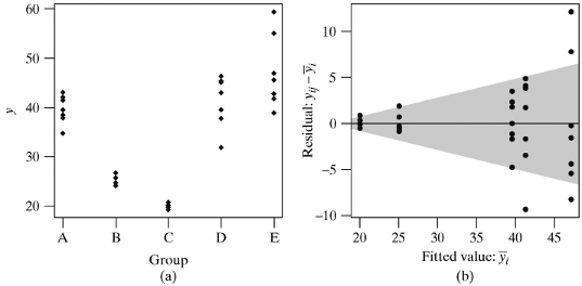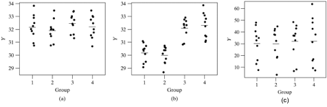 - The following plot of fictitious data illustrates a case where the variance is not constant across groups