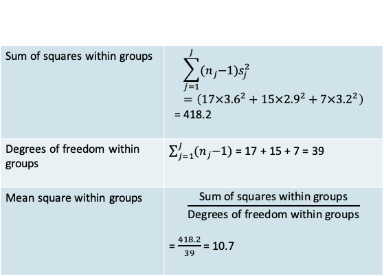 - The sample size in each group is \(n_1 = 18\), \(n_2 = 16\) and \(n_3 = 8\)
