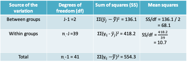 - The total number of observations is \(n_.=\sum_{j=1}^Jn_j\)
