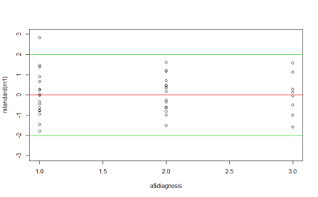 - There appears to be one unusual value lying beyond 2 in the diagnostic category 1