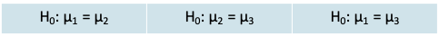 - We could have carried out 3 separate t-tests to compare the groups. The null hypotheses would be