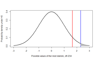 - The standardized test statistic is then \(\frac{\bar Y-\mu}{\frac{\sigma}{\sqrt n}}=\frac{15.45}{\frac{18.97}{\sqrt{235}}}=12.49\)