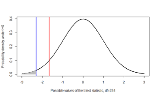 - Use a t-test to test the hypothesis of no difference against a non-directional alternative. Let α=0.05