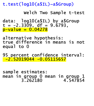 - Use a t-test to test the hypothesis of no difference against the alternative that the experimental conditions produce a larger mean than the control conditions. Let α=0.05.