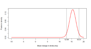 - Posterior distribution for the mean change in blood pressure in the renal denervation group (µRD)