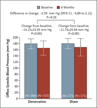 - In a randomized , blinded, controlled trial (Bhatt et al., NEJM, 2014) concluded there was no significant difference between patients who received renal denervation and those who received a sham procedure