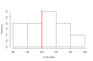 - To make inferences about the true population mean E. coli count, we could rely on a t-test of the following null hypothesis