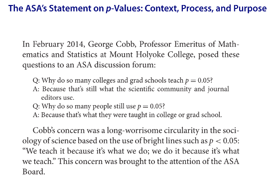 - As the ASA statement noted, frequentist statistical methods are still widely taught