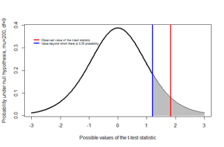- Make inferential statements of the form P(data | Hypothesis about µ), e.g. P(Observed mean > 204.8 | H0: µ ≤ 200)