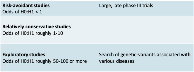 8.2.8 Pre-study odds of H0:H1