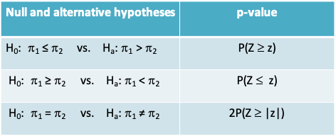 - You may find other variations of the expression for the hypothesis test, e.g. those based on a pooled proportion