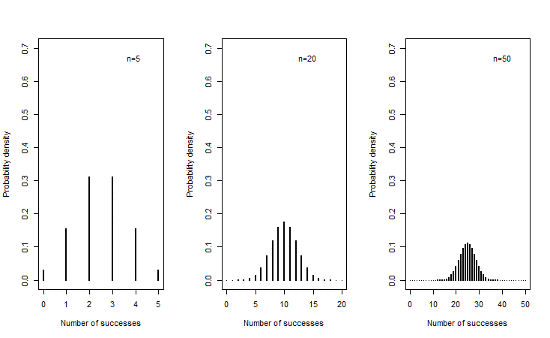 - This is true even for extreme values of π close to 0 or 1, though values closer to π=0.5 will approach normality at a smaller sample size