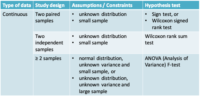 - The Wilcoxon rank sum test for comparing samples that are not paired