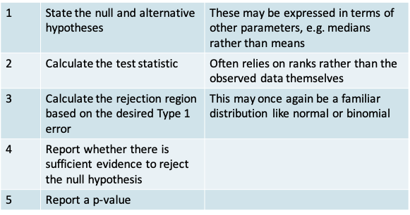 - The procedure for non-parametric hypothesis testing is similar to that for parametric tests