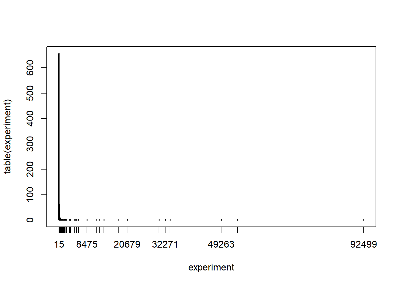 We can see that the distribution is very skewed, most often the length is 15 spins, but then sometimes the game has a length which is much longer. Therefore, the median of the data is a much better option to summarize the average length of the game. We can compute it, together with a range of plausible values, as