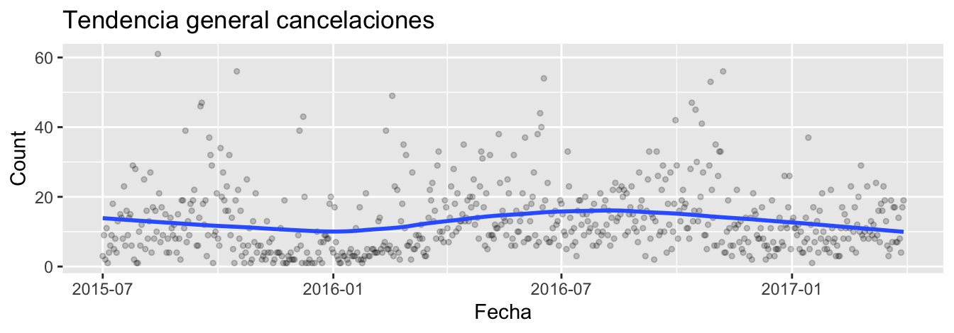 Para analizar tendencias de cancelación en el timepo se agrupan las cancelaciones por fecha.