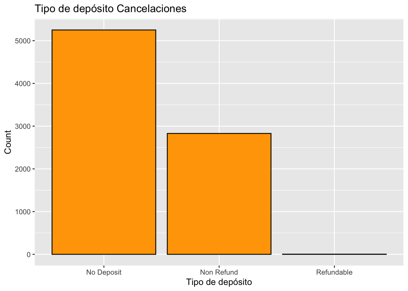 Analisando la variable deposit_type, se extrae el subset de deposit_type cancelados. Revisamos los porcentajes de cada categoría en las otras variables y observamos que el 97% de las cancelaciones sin rembolso pertenecen al país PRT.