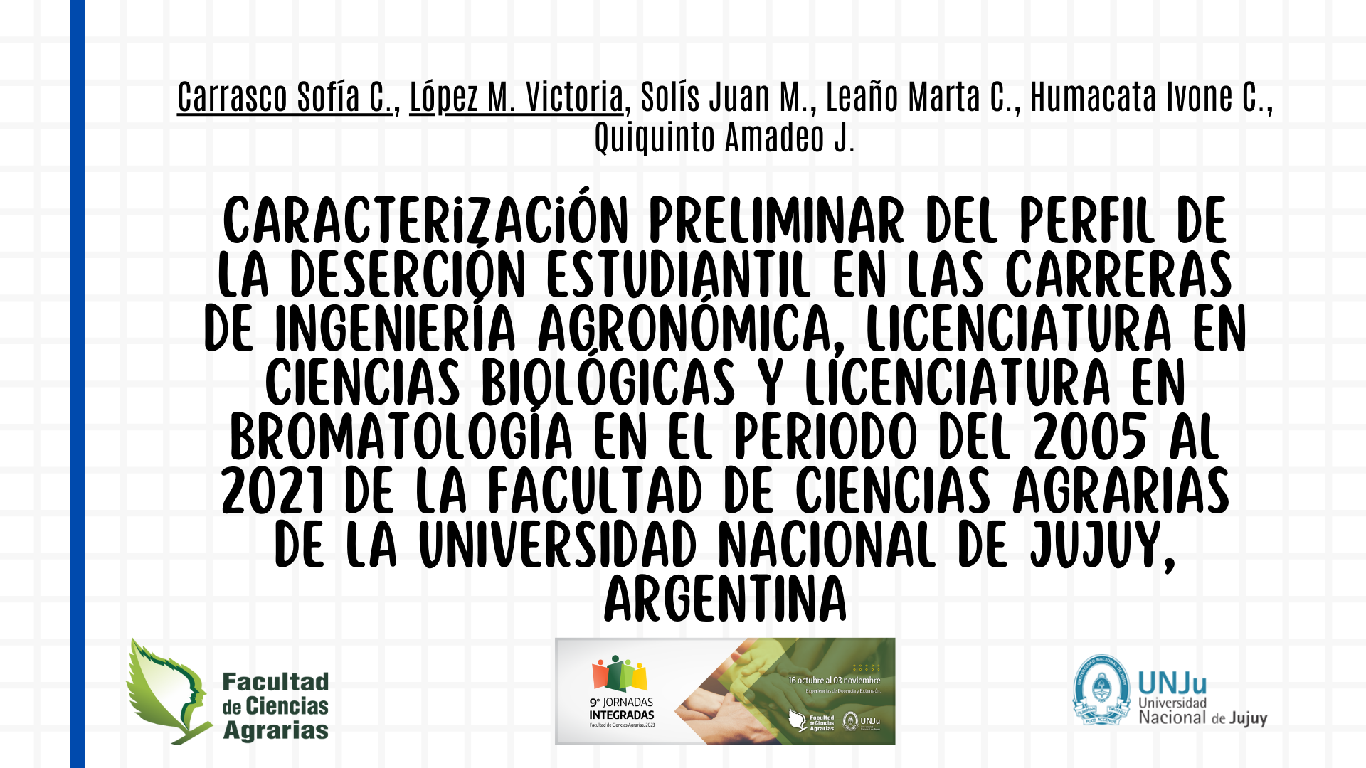 Caracterizar el perfil de una muestra de alumnos desertores en las carreras de Ingeniería Agronómica, Licenciatura en Bromatología y Licenciatura en Ciencias Biológicas de la FCA UNJU en el periodo comprendido entre 2005 y 2021.