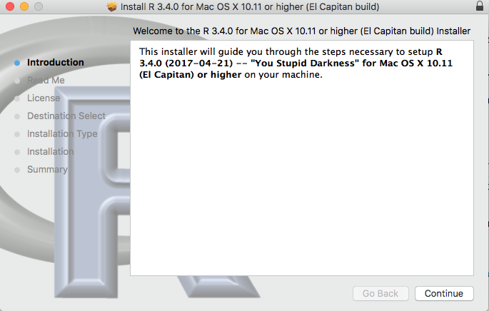 Follow the instructions on the installer that begins when you click on the downloaded file. Once you are finished, R should be installed on your system.