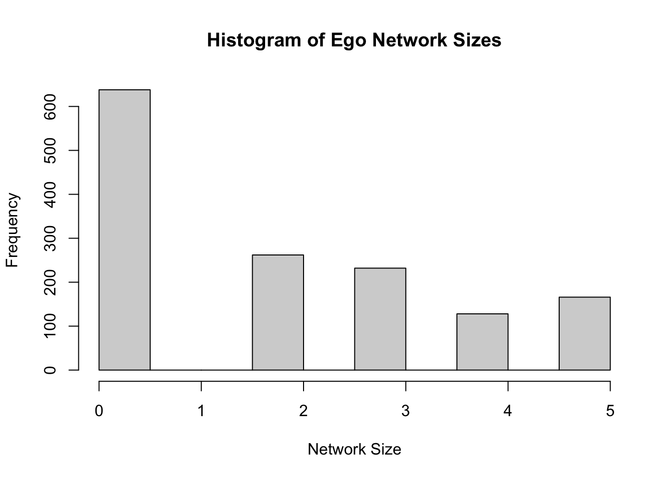 hist(network_sizes, main = "Histogram of Ego Network Sizes", xlab = "Network Size")
