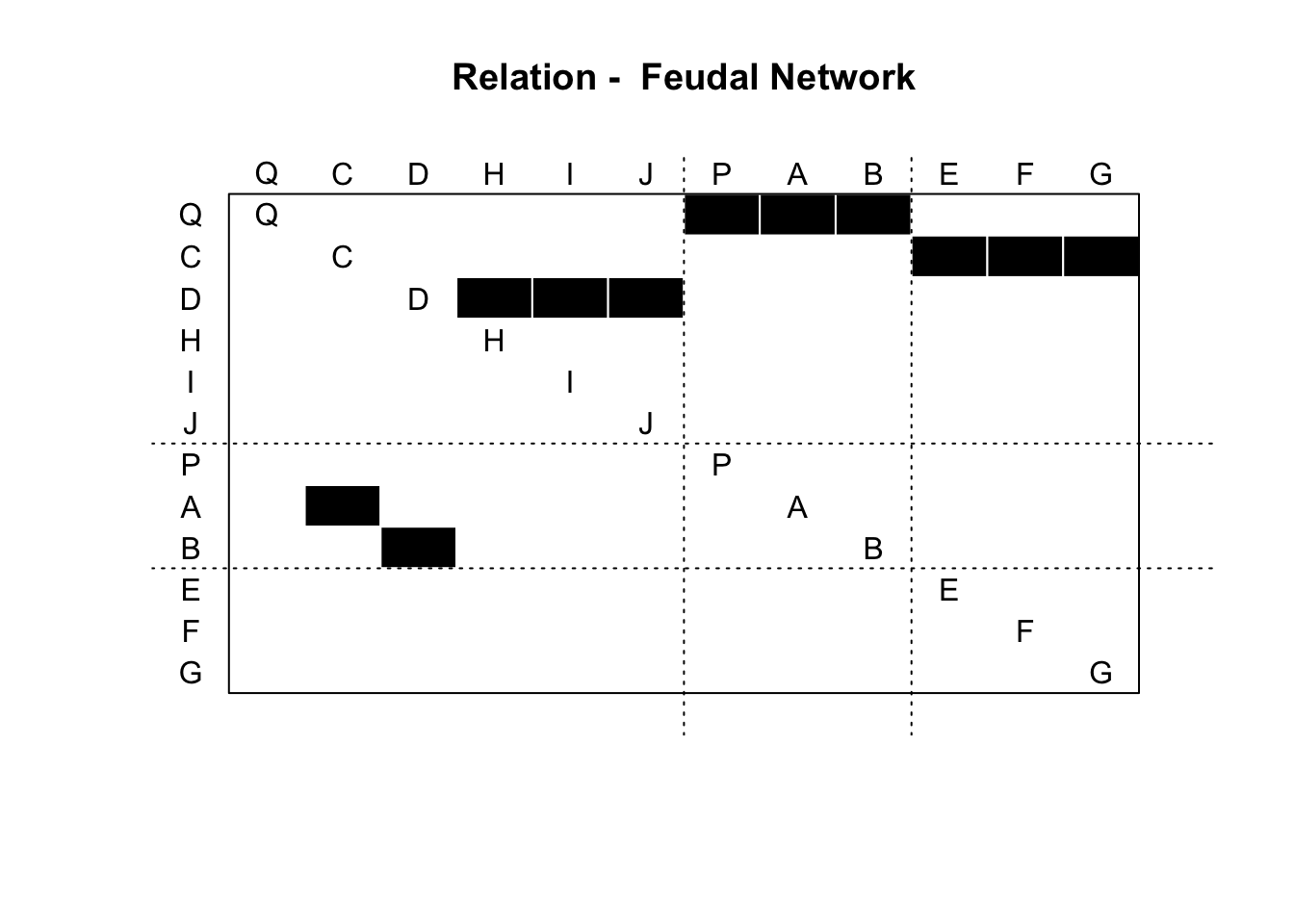 We can also plot the result using the blockmodel() function from the sna package (part of statnet).