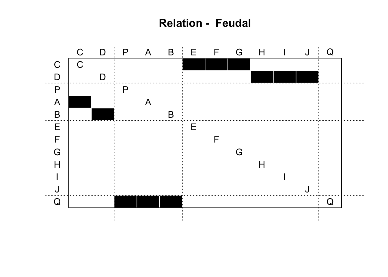 Before we deal with our definitional problem, let’s work through the CONCOR algorithm, introduced by Breiger et al. and made use of by White, Boorman, and Breiger in their seminal paper, Social Structure from Multiple Networks. I. Blockmodels of Roles and Positions. This method relies a similar definition of equivalence as the one outlined above - it identifies structurally equivalent nodes through correlating their relation sets - but because it uses correlation, and implements the stacking of matrices, it allows one to produce a block model of multiple relations simultaneously.