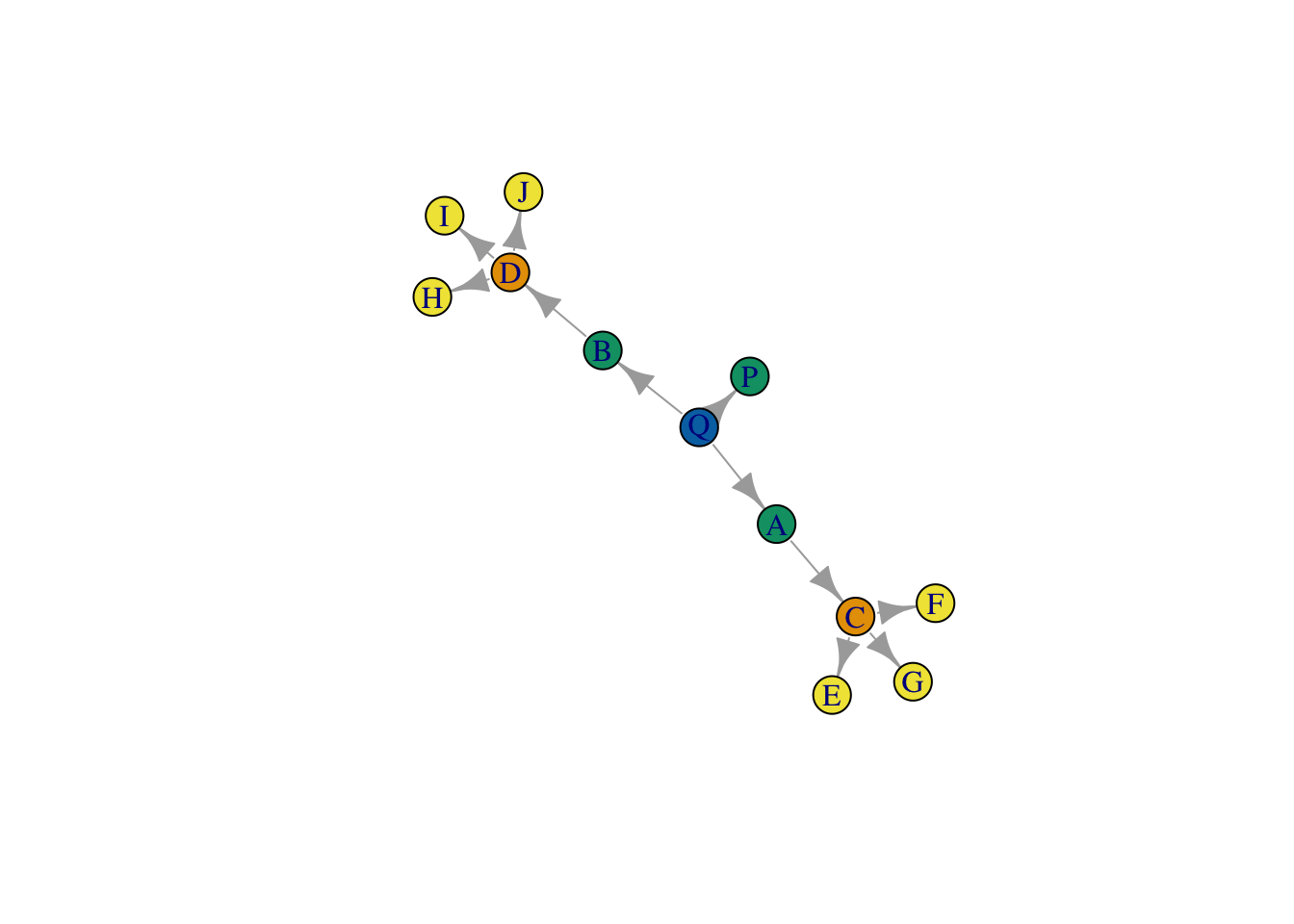 el <- data.frame(Ego = c("Q", "Q", "Q", "A", "B", "C", "C", "C", "D", "D", "D"), Alter = c("P", "A", "B", "C", "D", "E", "F", "G", "H", "I", "J"))
