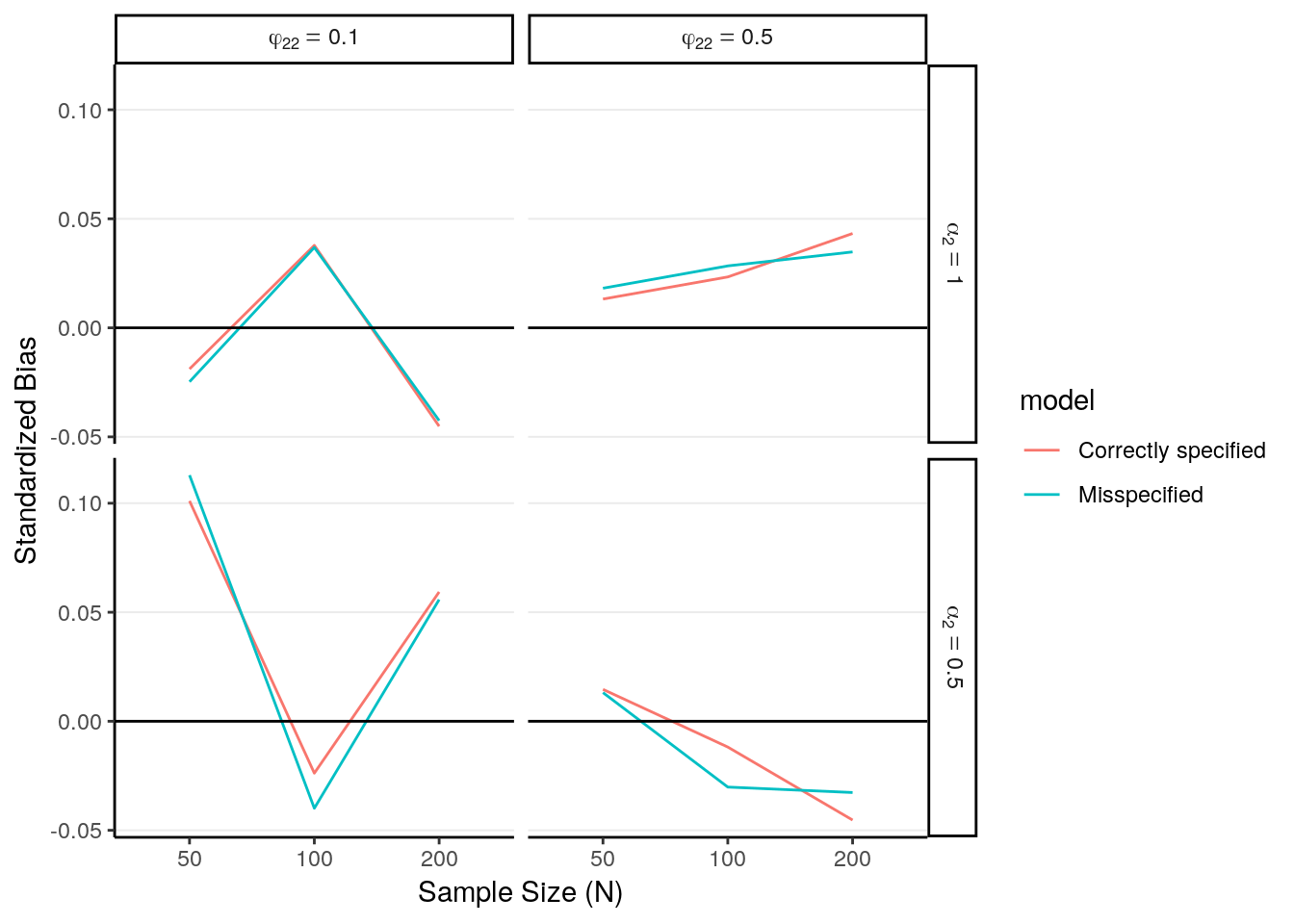 labs(x = "Sample Size (N)", y = "Standardized Bias")
