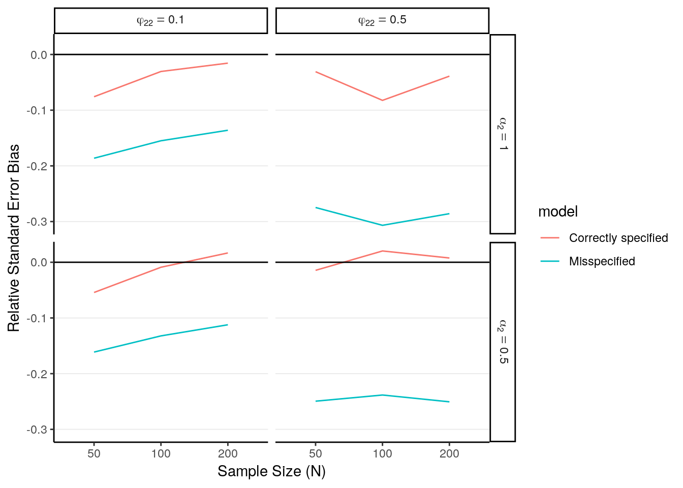 labs(x = "Sample Size (N)", y = "Relative Standard Error Bias")