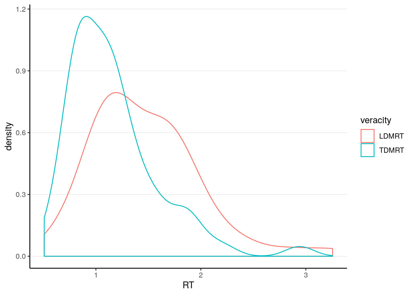 ggplot(aes(x = RT, col = veracity)) +