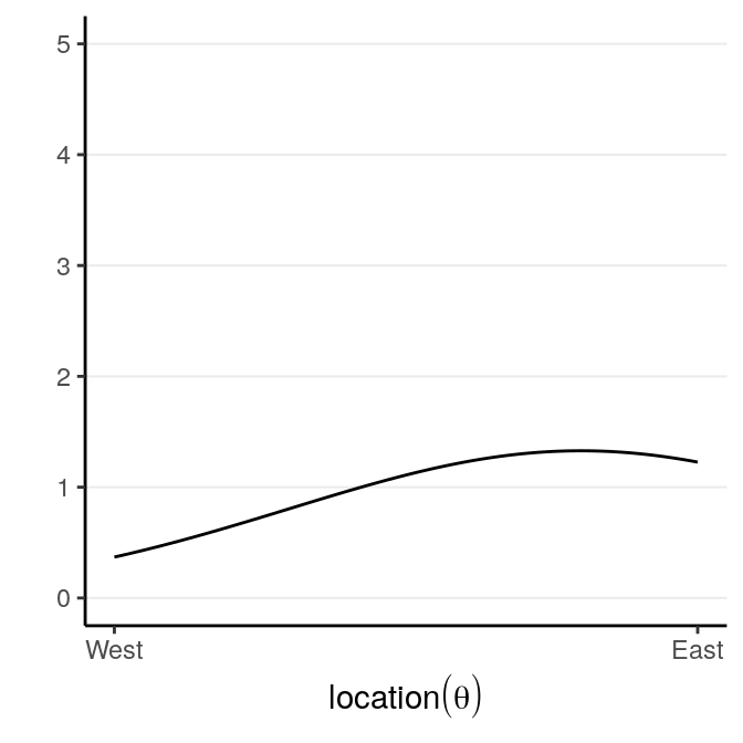 which says that our belief is that the plane is about twice more likely to be towards the east than towards the west. Below are two other options for priors (out of infinitely many), one providing virtually no information and the other encoding stronger information: