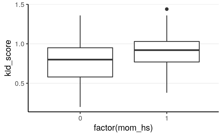 kid_scorewhenmom_iq= 0; also called regression intercept. - \(\beta_1\): mean increase in