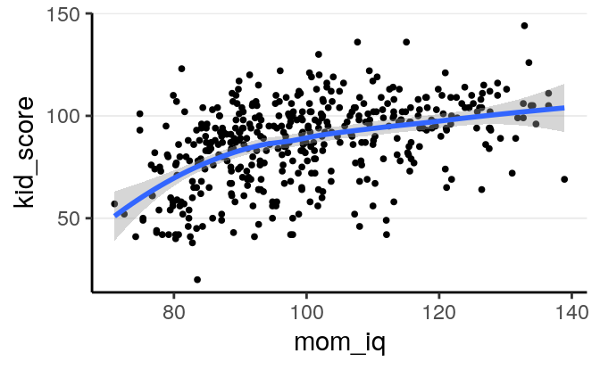 is modelled as a function of a continuous variable, mom_iq, instead of a