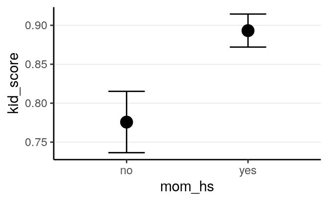 And you can see the uncertainty is larger for mom_hs = 0. This makes sense