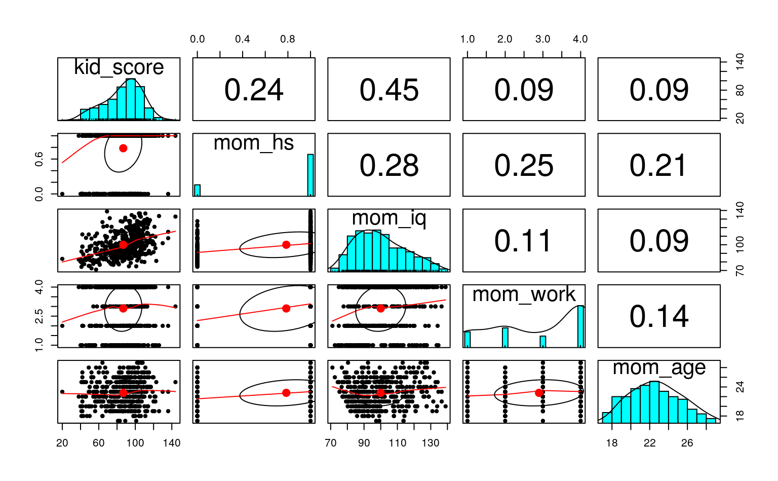 | mom_iq_c.mom_hsyes | -0.42 | -0.73 – -0.12 | ||||||