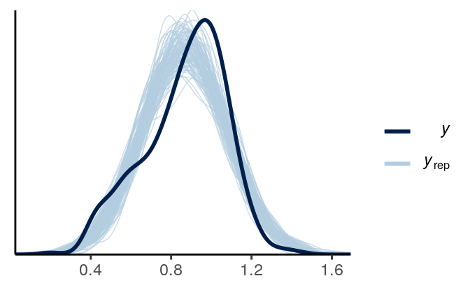 \[\begin{align*} \beta_0 & \sim \mathcal{N}(0, 1) \\ \beta_1 & \sim \mathcal{N}(0, 1) \\ \sigma & \sim t^+(4, 0, 1) \end{align*}\]
