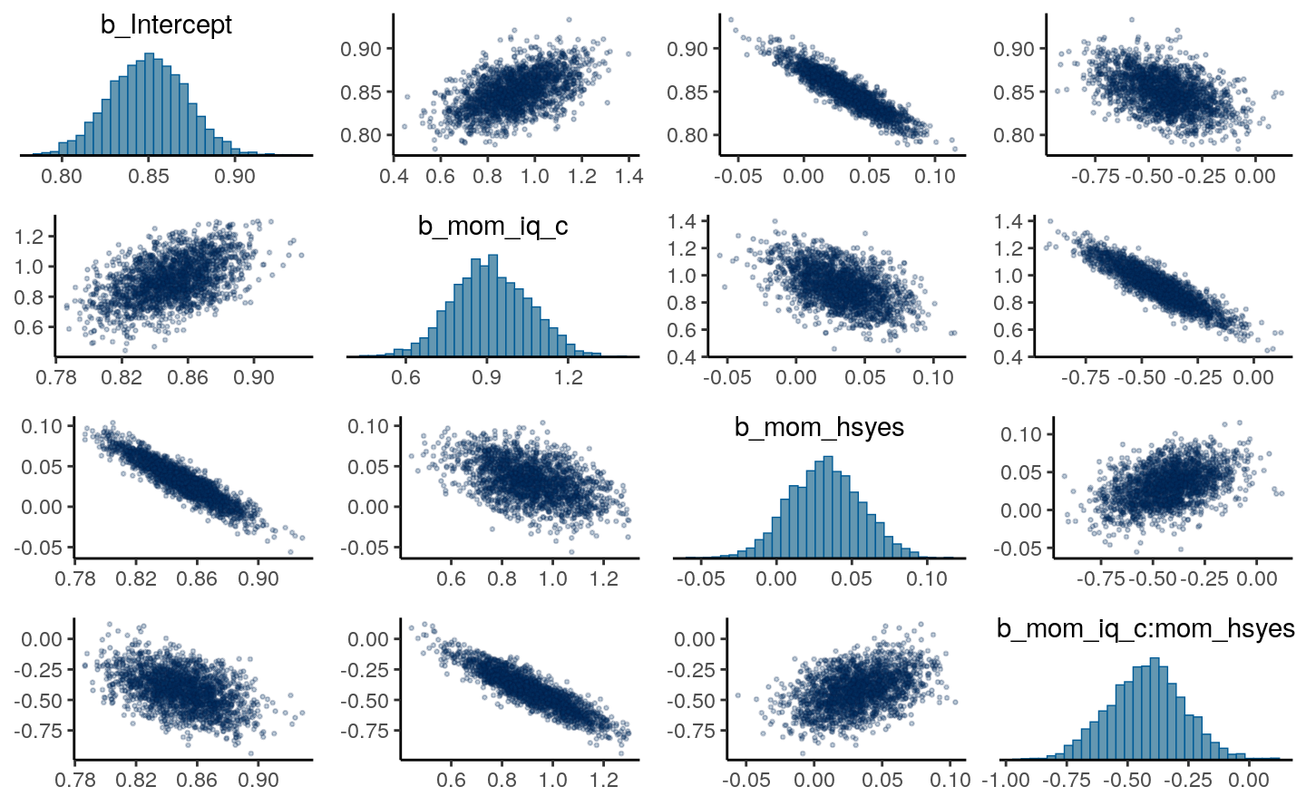 m4t <- brm(kid_score ~ mom_iq_c * mom_hs, data = kidiq100,