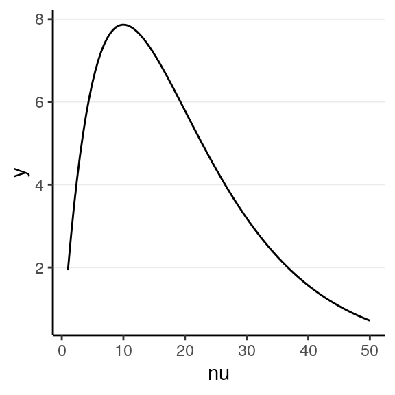 ggplot(tibble(nu = c(1, 50)), aes(x = nu)) +